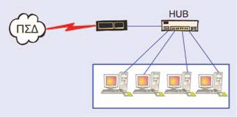 σχολικού εργαστηρίου, είναι απαραίτητη μια επιπλέον συσκευή (hub), που επιτρέπει τη διασύνδεση όλων των υπολογιστών μεταξύ τους (Εικόνα 4.5).
