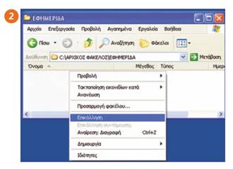 περιεχόμενο του φακέλου που επιλέξαμε. Με δεξιά επιλογή στην περιοχή