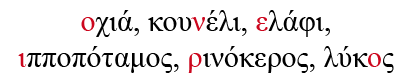 Γράψε τα κόκκινα γράμματα με τη σειρά, βάλε τόνο και διάβασε.