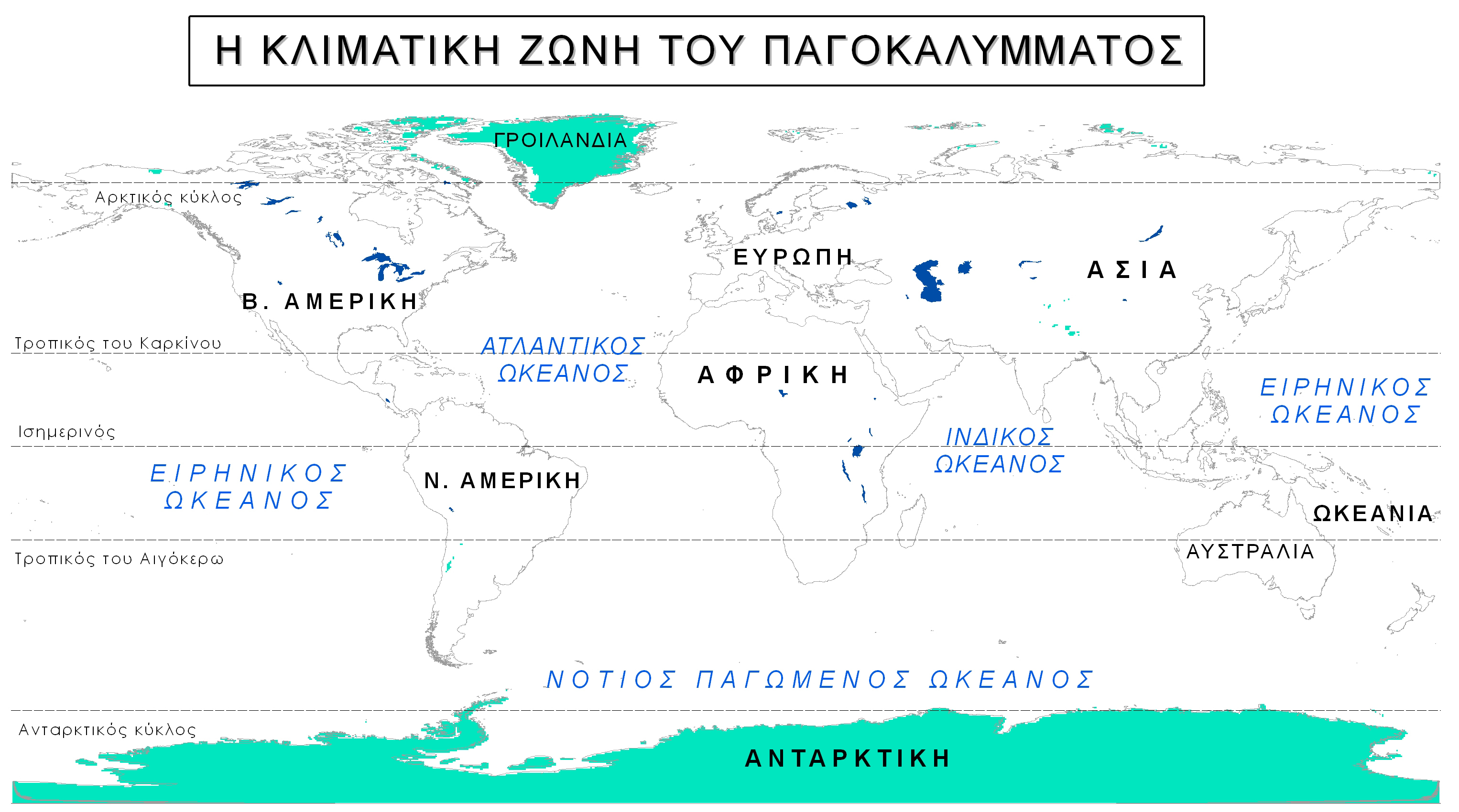 Ασίας και της Ευρώπης και το νησί Γροιλανδία. Η νότια πολική ζώνη