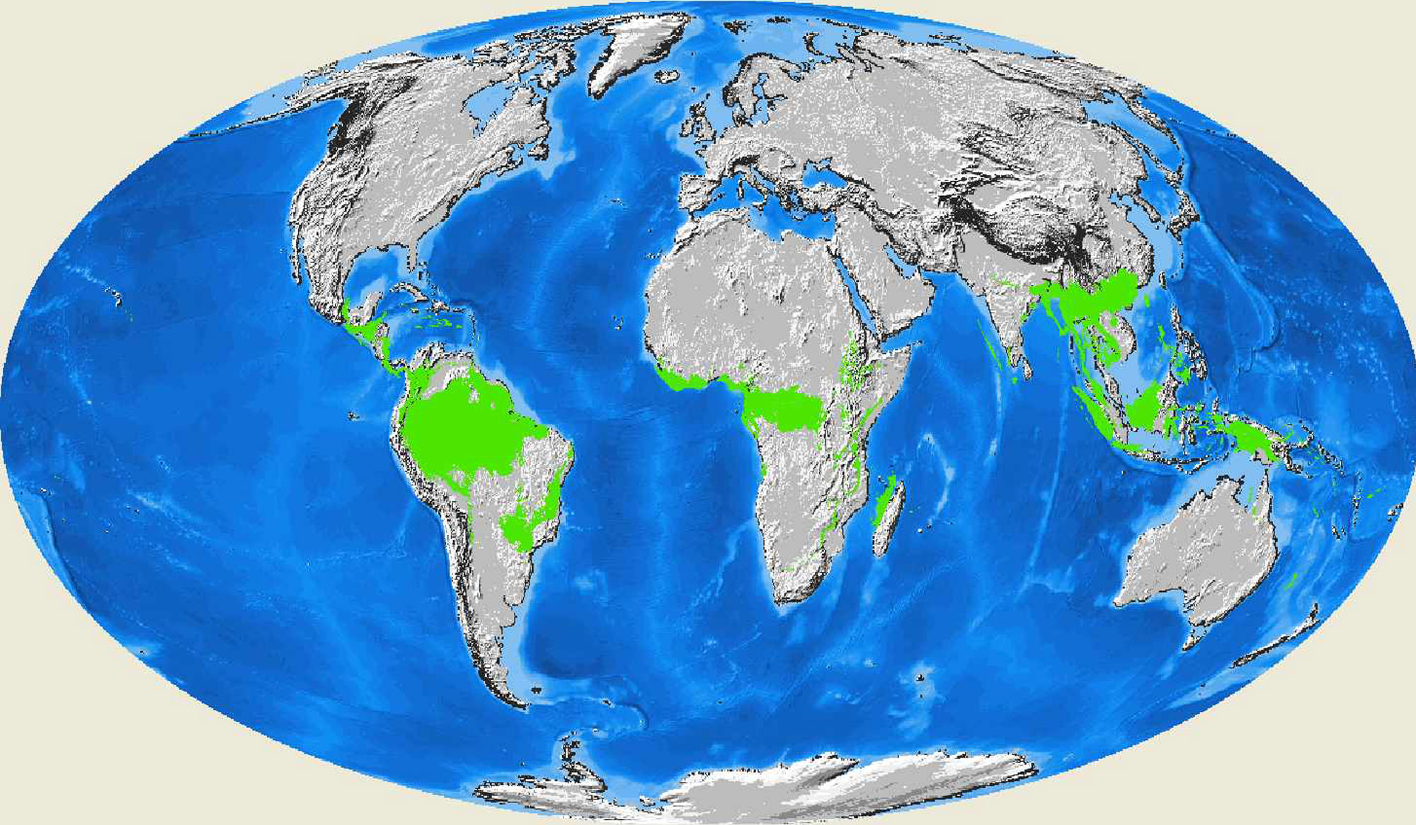Τα τροπικά δάση εκτείνονται στην τροπική ζώνη, κυρίως γύρω από τον Ισημερινό. Στις περιοχές αυτές οι βροχοπτώσεις είναι συνεχείς και η θερμοκρασία κυμαίνεται από 20ο έως 30ο C καθ´ όλη τη διάρκεια του έτους. Στα τροπικά δάση συναντάμε δέντρα πλατύφυλλα, επίφυτα φυτά (προσκολλώνται στα κλαδιά και στους κορμούς των δέντρων), καθώς επίσης θάμνους και πόες. Οι συνθήκες, που επικρατούν εδώ, δημιουργούν ένα ιδανικό περιβάλλον για την ανάπτυξη των φυτών. Τα φυτά των τροπικών δασών δεν σταματούν ποτέ την ανάπτυξή τους και δεν χάνουν τα φύλλα τους. Τα δέντρα μεγαλώνουν σε διαφορετικά ύψη, μέχρι και στα 50 μ. ακόμη. Έχουν πολύ πυκνό φύλλωμα, το οποίο εμποδίζει τις ακτίνες του Ήλιου να φθάσουν στο έδαφος, με αποτέλεσμα αυτό να είναι πάντα υγρό και σκεπασμένο από σάπια φύλλα. Οι θρεπτικές ουσίες, που προέρχονται από την αποσύνθεση των φύλλων, απορροφώνται από τις ρίζες των δέντρων. Όσο απομακρυνόμαστε από τον Ισημερινό συναντάμε τροπικά δάση φυλλοβόλων δέντρων, στα οποία οι βροχοπτώσεις σημειώνονται κυρίως έπειτα από περίοδο παρατεταμένης ξηρασίας. Η περίοδος των βροχοπτώσεων αποκαλείται υγρή περίοδος των μουσώνων. Θυμηθείτε από προηγούμενο μάθημα