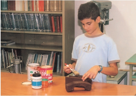 4.5 ΣΥΝΑΡΜΟΛΟΓΗΣΗ ΤΩΝ ΤΜΗΜΑΤΩΝ ΤΗΣ ΚΑΤΑΣΚΕΥΗΣ ΚΑΙ ΦΙΝΙΡΙΣΜΑ Αφού ολοκληρωθεί η κατασκευή των επιμέρους τμημάτων, στη συνέχεια ο μαθητής θα προχωρήσει στη ![]() Εικόνα 4.41: Η κατασκευή ολοκληρώνεται με το βάψιμο συναρμολόγησή τους. Και στο στάδιο αυτό χρειάζεται προσοχή αφού μια πρόχειρη συναρμολόγηση μπορεί να καταστρέψει το έργο. Με το τελικό φινίρισμα ο μαθητής θα διορθώσει μικρά λάθη που έγιναν κατά τη συναρμολόγηση (συνήθως χρησιμοποιώντας στόκο), ώστε το τελικό αποτέλεσμα να είναι όσο γίνεται καλύτερο. Η κατασκευή θα ολοκληρωθεί με το βάψιμο. Σε περίπτωση που ο χρωματισμός έγινε στα επιμέρους τμήματα, ο μαθητής θα διορθώσει ζημιές που έγιναν κατά τη συναρμολόγηση. |