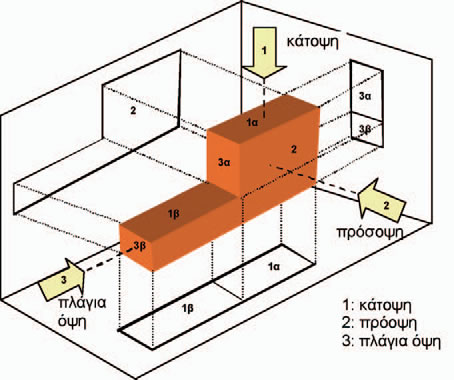 Εικόνα Β-4: Δημιουργία των τριών όψεων ενός τρισδιάστατου αντικειμένου.