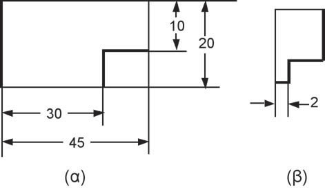 - αν μία διάσταση είναι πολύ μικρή, βέλη και αριθμός τοποθετούνται όπως στο σχήμα Β-6β.