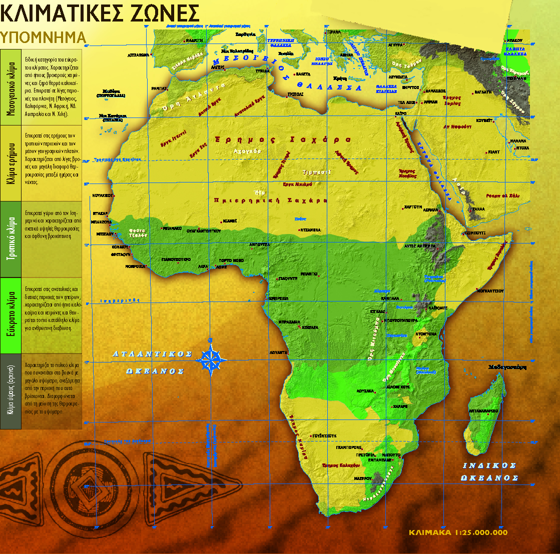 Στη χαρτοθήκη του σχολείου σου υπάρχουν χάρτες για όλες τις περιοχές του κόσμου. Με προσεκτική ανάγνωση αυτών των χαρτών, με συνδυασμό των πληροφοριών τους και με τις κατάλληλες ερωτήσεις μπορούμε να αντλήσουμε πολλά στοιχεία για όποια περιοχή του κόσμου θέλουμε να μελετήσουμε. Ας «ανακρίνουμε» λοιπόν τους χάρτες, για να πάρουμε πληροφορίες για την Αφρική. Αναζήτησε τους διαφορετικούς χάρτες της Αφρικής που είναι διαθέσιμοι στο σχολείο σου και άρχισε την «ανάκρισή» τους!!! ![]() Πιθανές ερωτήσεις...