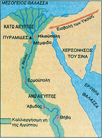 «Δώρον του Νείλου» ονόμαζαν οι αρχαίοι Έλληνες την Αίγυπτο και είχαν απόλυτο δίκιο. Ο Νείλος, που πηγάζει σχεδόν από τον Ισημερινό, διασχίζει την Αίγυπτο σε μία απόσταση 1.000 χιλιομέτρων και την μεταβάλλει σε αληθινό σιτοβολώνα. Ο Νείλος είναι η μόνη οδός επικοινωνίας για την Αίγυπτο. Πλήθος πλοίων τον διασχίζουν. Συνηθισμένοι στη ναυσιπλοΐα οι Αιγύπτιοι διακινδυνεύουν και ταξίδια στην ανοιχτή θάλασσα. Πλέουν προς τις ακτές της Παλαιστίνης, απ’ όπου προμηθεύονται ξυλεία. Όμως τακτικά ο Νείλος πλημμυρίζει και τα νερά του κατακλύζουν τις γύρω περιοχές.