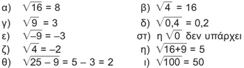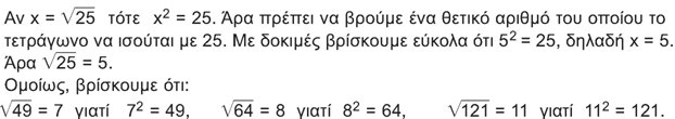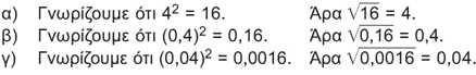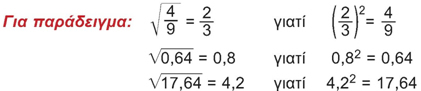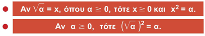 - Από τον ορισμό της τετραγωνικής ρίζας, προκύπτει ότι: