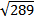 Ο θετικός αριθμός 17, του οποίου το τετράγωνο ισούται με 289, ονομάζεται τετραγωνική ρίζα του 289 και