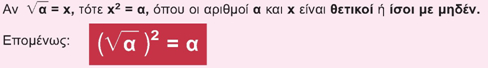 ενός θετικού αριθμού α, λέγεται ένας θετικός αριθμός ο οποίος, όταν υψωθεί στο τετράγωνο, δίνει τον αριθμό α.