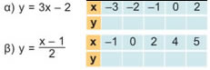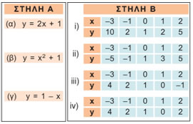 Η αντιστοιχία μεταξύ των τιμών των μεταβλητών x και y φαίνεται καλύτερα με τη βοήθεια του πίνακα τιμών.