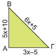 ΑΒ + ΒΓ + ΓΑ = 5x + 10 + 6x + 5 + 3x - 5 = 14x + 10.