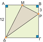β) Είναι ΜΔ² + ΜΡ² = 180 + 45 = 225 = ΔΡ², οπότε σύμφωνα με το αντίστροφο του Πυθαγόρειου θεωρήματος,