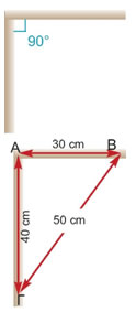 Για να σχηματίσει ορθή γωνία με δύο ξύλινα δοκάρια (όπως λέμε για να «γωνιάσει» τα δοκάρια), ένας τεχνίτης μετράει στο ένα δοκάρι ΑΒ = 30 cm και στο άλλο ΑΓ = 40 cm. Στη συνέχεια, τα τοποθετεί κατάλληλα, ώστε να είναι ΒΓ = 50 cm. Μπορείτε να εξηγήσετε γιατί είναι σίγουρος ότι η γωνία που σχηματίζουν τα δοκάρια είναι ορθή;