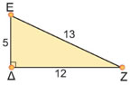 Στο τρίγωνο ΔΕΖ οι κάθετες πλευρές έχουν μήκη 5 και 12, οπότε το άθροισμα των τετραγώνων των κάθετων πλευρών είναι
