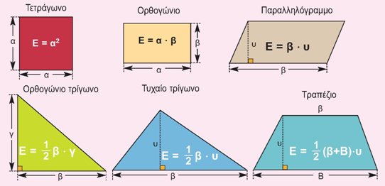 Εμβαδά των βασικών επιπέδων σχημάτων.