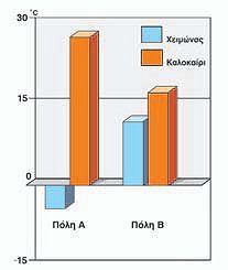 ωκεάνιο κλίμα, ενώ η άλλη ηπειρωτικό. Ποια πόλη, η Α ή η Β, έχει