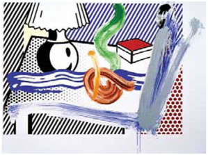 Ο Λιχτενστάιν, μέσα από το κίνημα της Ποπ Αρτ*, χρησιμοποίησε ως θέματα