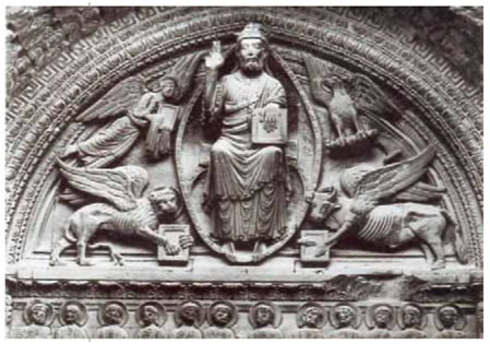 ανάγλυφα στους ναούς. Ο Χριστός περιβάλλεται από τα σύμβολα των