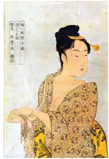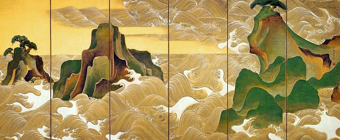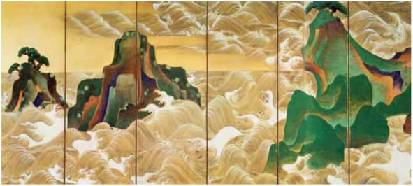 4.7. Ιαπωνική τέχνη Οι Κινέζοι μοναχοί, καλλιτέχνες και τεχνίτες κατά τον 6ο αιώνα μετέδωσαν το Βουδισμό, την τέχνη και τον πολιτισμό τους στους Ιάπωνες, οι οποίοι τα υιοθέτησαν και τα αφομοίωσαν. Τα βασικά χαρακτηριστικά της Ιαπωνικής πλέον τέχνης είναι η απλότητα και η καθαρότητα των περιγραμμάτων, η επικράτηση της οριζόντιας σύνθεσης, η αντίθεση φωτεινών και σκούρων επιφανειών και η ασυμμετρία. Οι ξύλινοι βουδιστικοί ναοί με τις περίτεχνες στέγες κτίζονταν έξω από την πόλη. Τα κάστρα των ευγενών κτίζονταν επάνω σε υπερυψωμένες πέτρινες βάσεις και στο εσωτερικό τους είχαν συρτά χωρίσματα από χαρτί, επιτρέποντας έτσι στα δωμάτια να μεγαλώνουν ή να μικραίνουν. Το χαρακτηριστικό αυτό διατηρείται ακόμα στις γιαπωνέζικες κατοικίες, ενώ για τον ίδιο λόγο χρησιμοποιούνται τα ζωγραφιστά παραβάν.
