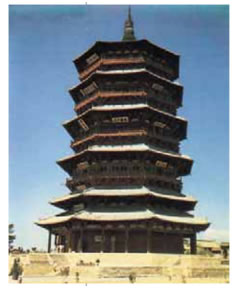 4.6. Κινεζική τέχνη Τα θρησκευτικά δόγματα του Βουδισμού, του Ταοϊσμού και του Κομφουκιανισμού έδωσαν τα βασικά στοιχεία στον κινέζικο πολιτισμό, ενώ οι διάφορες αυτοκρατορικές δυναστείες μέσα στους αιώνες καθόρισαν τους κανόνες της ζωής και την τέχνη των Κινέζων. Τα στοιχεία και το ύφος της τέχνης δεν εγκαταλείφθηκαν ποτέ, οι ιδέες και τα πρότυπα επαναλήφθηκαν και η αντιγραφή τους θεωρήθηκε τιμή και προτέρημα των καλλιτεχνών. Χαρακτηριστικό κτίριο είναι η παγόδα, είδος ναού που στεγάζει ιερά λείψανα και έχει συμβολική σημασία. Τετράγωνη ή πολυγωνική, η παγόδα είναι πολυώροφη, φτιαγμένη από ξύλο και κεραμίδι.