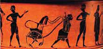 Μελανόμορφη πυξίδα που απεικονίζει επινίκια πομπή του τεθρίππου του Στησαγόρα, 540-530 π.Χ.