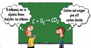 Σε μια μαθηματική εξίσωση τα δύο μέλη ενώνονται με ίσον (=), ενώ σε μια χημική εξίσωση με βέλος (→) |