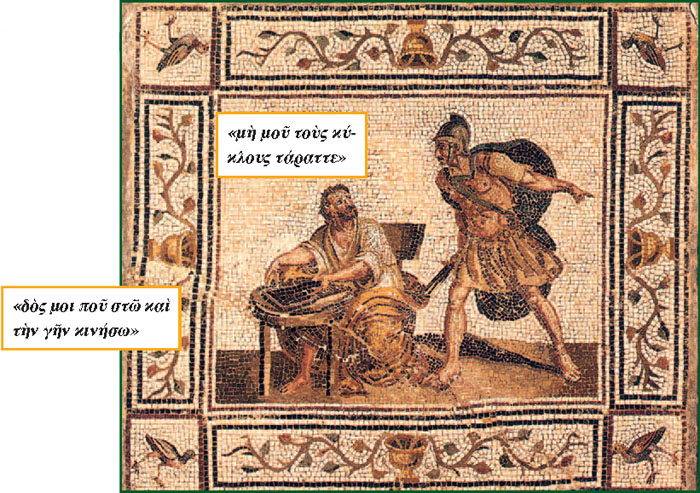 Θαυμάσαντος δὲ τοῦ Ἱέρωνος, καὶ δεηθέντος εἰς ἔργον ἐξαγαγεῖν τὸ πρόβλημα: Ο Πλούταρχος αναφέρει και σε άλλα χωρία ότι ο Ιέρων κατάφερε να στρέψει το ενδιαφέρον του Αρχιμήδη από τα θεωρητικά στα πρακτικά ζητήματα και να αξιοποιήσει τη μαθηματική ευφυΐα του προς το συμφέρον της πόλης.