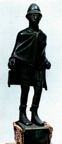 Χάλκινο ειδώλιο του 5ου αι.π.Χ. Κατακευάστηκε σε τοπικό εργαστήριο της Αρκαδίας και παριστάνει τον Ερμή με τη μορφή χαρακτηριστικού βοσκού της περιοχής (Αθήνα, Εθνικό Αρχαιολογικό Μουσείο).