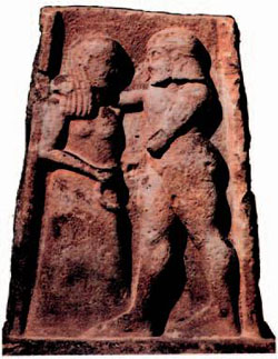 Μενέλαος και Ελένη (περ. 600 π.Χ., Αρχαιολογικό Μουσείο Σπάρτης)