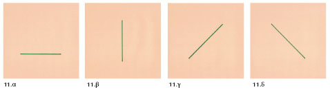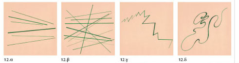 Οι ελεύθερες ευθείες δείχνουν ανεξαρτησία και κίνηση (Εικ.12.α). Οι τεμνόμενες υποβάλλουν τη σύγκρουση και την οξύτητα (Εικ.12.β). Η τεθλασμένη γραμμή παράγει οξύτητα και ένταση (Εικ.12.γ). Η καμπύλη γραμμή εκφράζει ταυτόχρονα κίνηση και ελευθερία, ρευστότητα και ευελιξία (Εικ.12.δ).