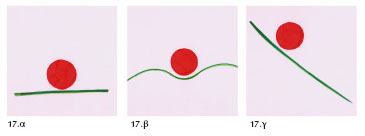 Ο κύκλος, ανάλογα με τις γραμμές που είναι κοντά του, μπορεί να ισορροπεί με αστάθεια (επάνω σε μια οριζόντια ευθεία) (Εικ.17.α) ή με σταθερότητα (επάνω σε μια καμπύλη) (Εικ.17.β) ή μπορεί να φαίνεται ότι κυλάει προς κάποια κατεύθυνση (επάνω σε μια λοξή ευθεία) (Εικ.17.γ).